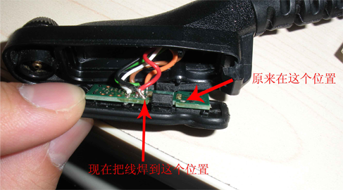 只要將黑色的線改焊到現(xiàn)在的位置即可實(shí)現(xiàn)兼容XIR P86系列的機(jī)器寫頻。