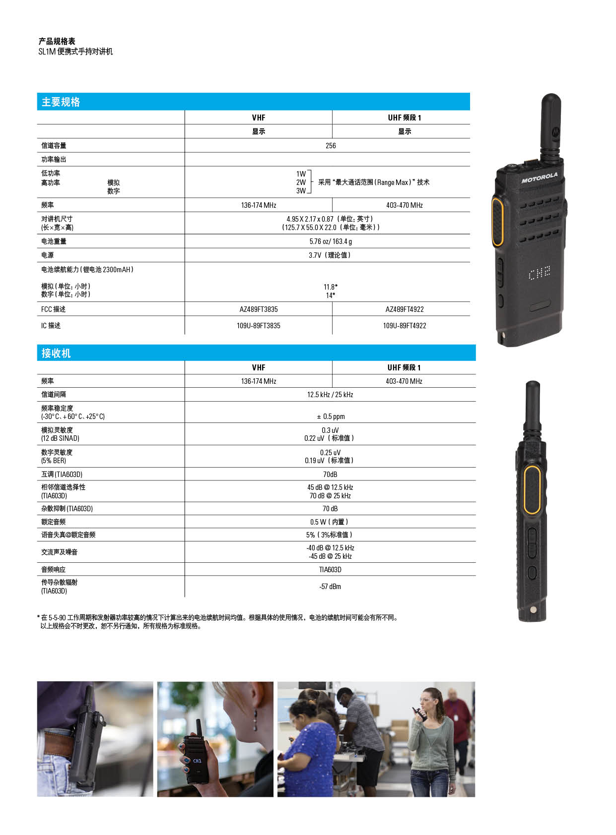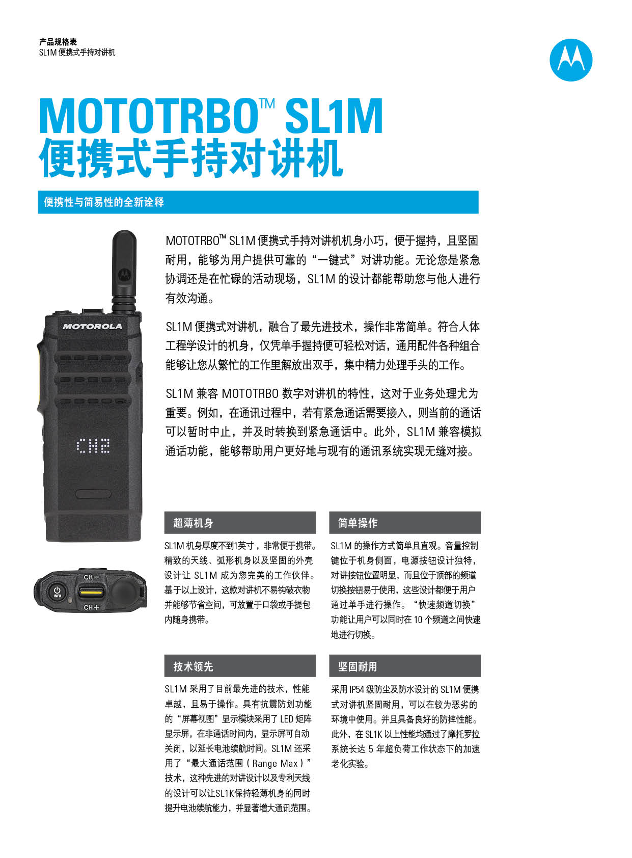 SL1M 采用先進(jìn)的技術(shù),性能卓越,且易于操作。具有抗震防劃功能的“屏幕視圖”顯示模塊采用了 LED 矩陣顯示屏,在非通話時(shí)間內(nèi),顯示屏可自動(dòng)關(guān)閉,以延長電池續(xù)航時(shí)間。SL1M 還采用了“通話范圍(Range Max)”技術(shù),這種先進(jìn)的對講設(shè)計(jì)以及專利天線的設(shè)計(jì)可以讓 SL1M 保持輕薄機(jī)身的同時(shí)提升電池續(xù)航能力,并顯著增大通訊范圍。